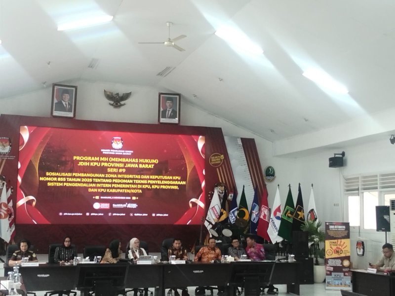 Garut- KPU Kabupaten Garut mengikuti kegiatan Membahas Hukum (MH) seri #9 yang diselenggarakan oleh KPU Provinsi Jawa Barat, pada Rabu, (5/11/2025) di Aula Setia Permana. Kegiatan ini mengusung tema “Sosialisasi Pembangunan Zona Integritas dan Keputusan KPU Nomor 855 Tahun 2025 tentang Pedoman Teknis Penyelenggaraan Sistem Pengendalian Intern Pemerintah di KPU, KPU Provinsi, dan KPU Kabupaten/Kota” dan diikuti oleh Ketua Divisi Hukum Pengawasan, Asyim Burhani; Ketua Divisi Parmas dan SDM, Rikeu Rahayu; Sekretaris, Asep Budiyanto; Kasubbag Teknis Penyelenggaraan dan Hukum, Dudi Muharam; serta Operator SPIP, Herly Septy. Ketua KPU Provinsi Jawa Barat, Ahmad Nur Hidayat membuka acara dengan menyampaikan urgensi penyusunan SPIP oleh seluruh satuan kerja. Selain itu, ia menjelaskan bahwa integritas adalah fondasi dalam menjalankan organisasi, maka dari itu tiap-tiap elemen dalam organisasi perlu menerapkan perilaku berintegritas. Turut hadir Anggota KPU RI, Iffa Rosita, yang menghimbau seluruh satuan kerja di Jawa Barat untuk mampu mewujudkan zona integritas dengan memastikan tiap sumber daya memiliki komitmen bersama dalam mewujudkan Wilayah Bebas Korupsi (WBK). Kepala Bagian Tata Usaha Kejaksaan Tinggi Jawa Barat, Malemna Sura Anabertha Br Sembiring, turut hadir dan menegaskan bahwa sinergitas antara KPU dan Kejaksaan perlu diperkuat, khususnya di Jawa Barat. Selain itu, KPU sebagai lembaga penyelenggara harus memperkuat pembangunan ZI, bukan hanya sebagai formalitas, tetapi sebagai wujud komitmen terhadap pemerintahan yang bersih. Anggota KPU Jawa Barat, Abdullah Sapi’i dan Aneu Nursifah, juga menambahkan bahwa dalam mendorong pembangunan ZI dan mewujudkan KPU yang WBK, diperlukan pengembangan kapasitas internal serta akselerasi pembangunan ZI di Kabupaten/Kota. Sebagai tindak lanjut, KPU Kabupaten Garut menegaskan komitmennya untuk mendukung penuh pembangunan Zona Integritas di lingkungan kerja, melalui penerapan nilai-nilai integritas, transparansi, dan akuntabilitas dalam setiap aspek penyelenggaraan kepemiluan. KPU Kabupaten Garut bertekad menjadi satuan kerja yang profesional, bersih, dan berorientasi pelayanan, guna mewujudkan penyelenggara pemilu yang berintegritas dan dipercaya masyarakat. ....