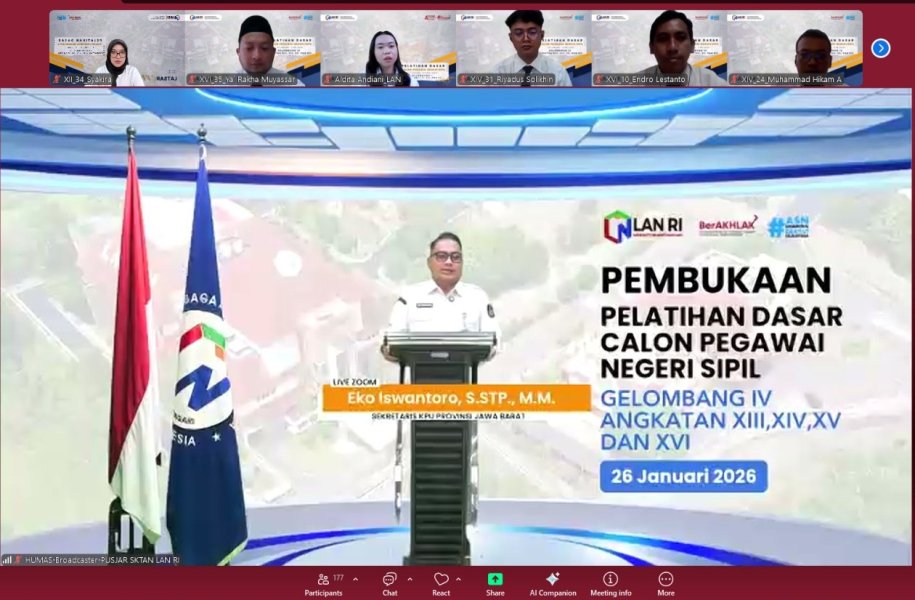 GARUT - Calon Pegawai Negeri Sipil (CPNS) Komisi Pemilihan Umum (KPU) Kabupaten Garut mengikuti Pembukaan Kegiatan Latihan Dasar (Latsar) CPNS Gelombang IV Tahun 2026 yang digelar secara daring melalui Zoom Meeting, Senin (26/1/2026). Kegiatan pembukaan tersebut dibuka oleh Sekretaris KPU Provinsi Jawa Barat, Eko Iswantoro. Dalam arahannya, Eko menekankan pentingnya partisipasi aktif dan sikap responsif peserta selama mengikuti seluruh rangkaian Latsar, khususnya dalam menyerap materi yang disampaikan oleh widyaswara dari Lembaga Administrasi Negara (LAN). Ia juga mengingatkan bahwa nilai-nilai dasar ASN atau Core Values ASN tidak boleh dipahami sebatas formalitas. Menurut Eko, nilai tersebut harus diinternalisasikan dan diwujudkan secara nyata dalam perilaku kerja maupun kehidupan sehari-hari sebagai aparatur sipil negara. “Latihan Dasar CPNS merupakan tahapan fundamental dalam membentuk karakter ASN yang berintegritas, profesional, dan berorientasi pada pelayanan publik,” ujar Eko. Lebih lanjut, Eko menyampaikan bahwa melalui Latsar ini, para CPNS diharapkan mampu memahami sekaligus menginternalisasi nilai-nilai dasar ASN dalam mendukung pelaksanaan tugas dan fungsi KPU sebagai lembaga penyelenggara pemilu yang menjunjung tinggi prinsip independensi, transparansi, dan akuntabilitas. Pembukaan Latsar CPNS Gelombang IV Tahun 2026 ini menjadi awal proses pembelajaran bagi para CPNS KPU Kabupaten Garut dalam mempersiapkan diri sebagai aparatur negara yang adaptif, beretika, serta memiliki komitmen kuat terhadap penguatan demokrasi melalui pelayanan kepemiluan yang berkualitas. ....