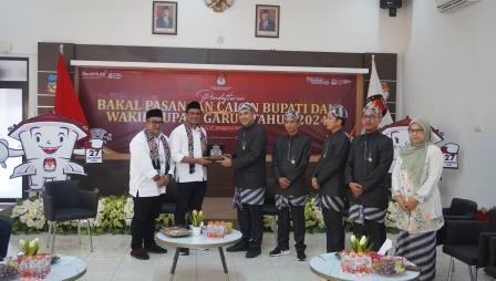 KPU Kabupaten Garut menerima pendaftaran Bakal Pasangan Calon Bupati dan Wakil Bupati Garut dari gabungan partai politik PKB, Gerindra, PDIP, Golkar, Nasdem, Buruh, Gelora, PAN, PBB, Demokrat dan Ummat yaitu Abdusy Syakur Amin dan Luthfianisa Putri Karlina pada pukul 14.40 WIB.