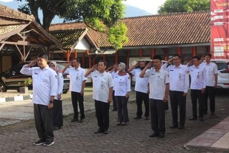 Garut - KPU Kabupaten Garut melaksanakan apel pagi rutin diawal bulan Agustus, senin, (01/08).