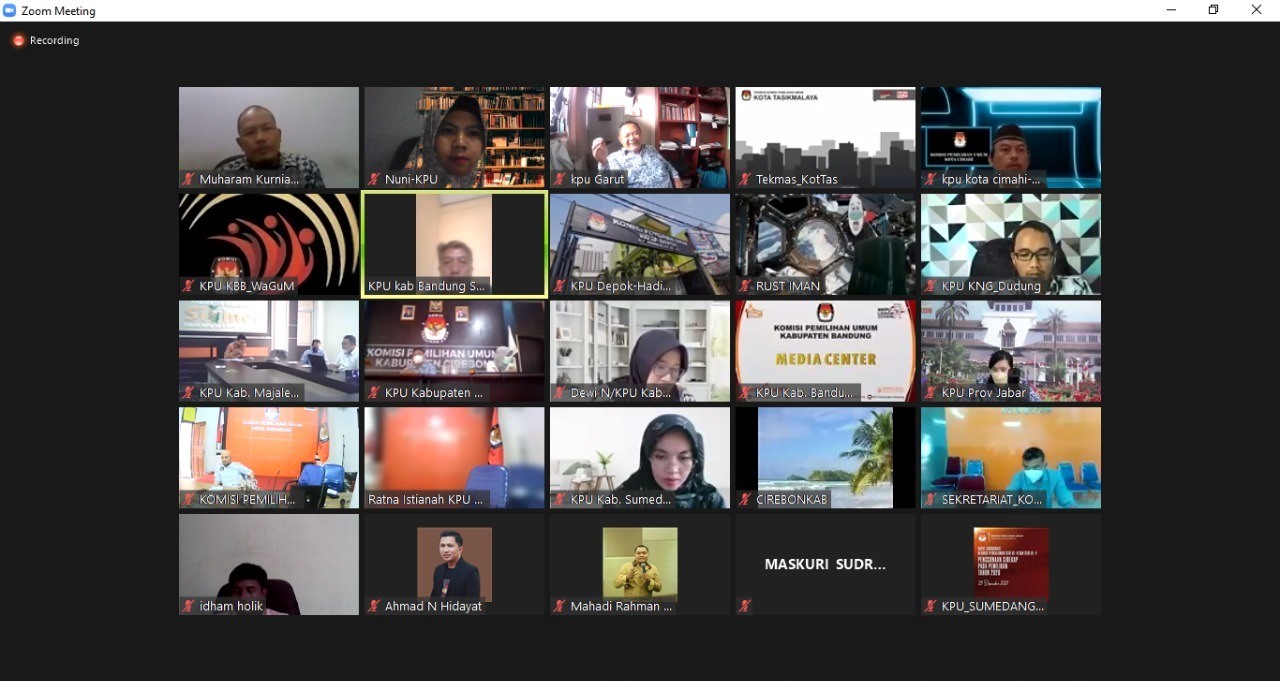 Garut, 17/1/2021- Mengawali tahun 2022, KPU Jawa Barat melaksanakan Rapat Koordinasi Penyusunan Program Kerja Divisi Sosialisasi Tahun 2022. Dalam kesempatan ini Ketua Divisi Sosialisasi, Pendidikan Pemilih, dan Partisipasi Masyarakat KPU Kabupaten Garut serta Kabupaten/Kota lainnya diberikan kesempatan untuk menyampaikan Program Kerja Tahun 2022.