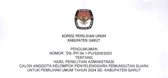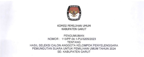KPU Kabupaten Garut mengumumkan Pendaftaran Pemantau Dalam Negeri Pemilihan Bupati dan Wakil Bupati Garut Tahun 2024 dengan ketentuan sebagai berikut : A. SYARAT PEMANTAU PEMILIHAN berbadan hukum; bersifat independen; mempunyai sumber dana yang jelas; dan terdaftar dan memperoleh akreditasi dari KPU Kabupaten/Kota sesuai dengan cakupan wilayah pemantauannya. B. WAKTU PENDAFTARAN Pendaftaran bagi Pemantau Pemilihan Bupati dan Wakil Bupati Garut Tahun 2024 mulai tanggal 27 Februari 2024 s/d 16 November 2024, Pukul 08.00 – 16.00 WIB, dengan menyerahkan kelengkapan administrasi berupa: formulir pendaftaran; surat keterangan terdaftar di pemerintah; profil organisasi lembaga pemantau pemilihan; nama dan jumlah anggota pemantau pemilihan; alokasi anggota Pemantau Pemilihan Bupati dan Wakil Bupati Garut Tahun 2024; rencana, tahapan dan jadwal kegiatan pemantauan pemilihan serta daerah yang ingin dipantau; nama, alamat, dan pekerjaan pengurus lembaga pemantau pemilihan; pas foto terbaru pengurus lembaga pemantau pemilihan; surat pernyataan mengenai sumber dana yang ditandatangani oleh ketua lembaga pemantau pemilihan; surat pernyataan mengenai independensi lembaga yang ditandatangani oleh ketua lembaga pemantau pemilihan; surat pernyataan atau pengalaman di bidang pemantauan dari organisasi pemantau yang bersangkutan atau dari pemerintah negara lain tempat yang bersangkutan pernah melakukan pemantauan bagi Pemantau Pemilihan asing; surat pernyataan kesediaan menyampaikan laporan pelaksanaan pemantauan pemilihan dan bersedia dikenakan sanksi apabila tidak menyampaikan laporan dimaksud; dan penambahan nama, jumlah dan alokasi anggota pemantau pemilihan serta penambahan daerah yang ingin dipantau sebagaimana dimaksud pada huruf (e) dilaporkan kepada KPU Kabupaten Garut. Pemantau pemilihan mengisi formulir pendaftaran dengan mengambil langsung ke kantor KPU Kabupaten Garut, Jl. Suherman KM. 147, Jati, Kec. Tarogong Kaler, atau bisa diunduh disini https://bit.ly/FORMULIRPENDAFTARANLEMBAGAPEMANTAU2024 Informasi lebih lanjut dapat menghubungi Kantor KPU Kabupaten Garut email : kpu.garutkab@gmail.com atau Narahubung Sdri. Ria Mariyana Sujana (081222656353). Demikian pengumuman ini dibuat, atas perhatiannya disampaikan terima kasih. PENGUMUMAN PENDAFTARAN PEMANTAU PEMILIHAN TAHUN 2024 dapat diunduh di sini FORMULIR PENDAFTARAN PEMANTAU PEMILIHAN TAHUN 2024 dapat diunduh di sini